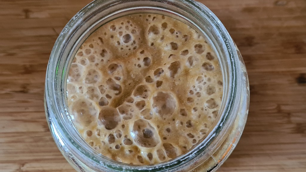 It took a bit of fiddling to get this one going. All the recipes and internet research said that it would get bubbly overnight. So bubbly, that the jar shouldn’t be more than 2/3 filled.