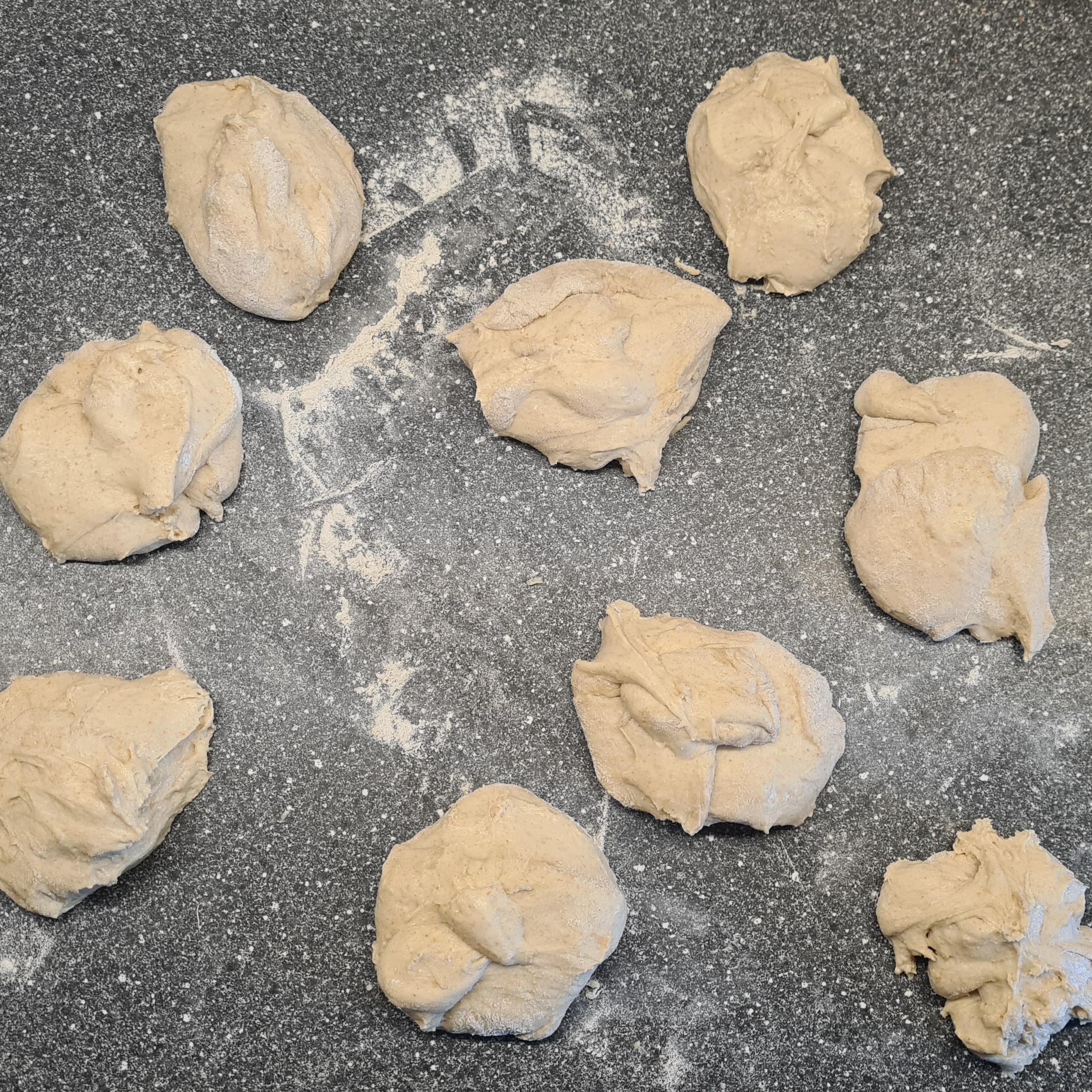 Divide the dough into 9-12 equal portions. 120-130g fits the size of my homemade patties perfectly, so I went with just 9.