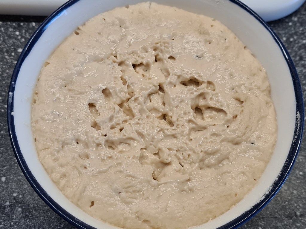 I had the dough rising at 30°C in the proofing box for 4 1/2 hours. I was in a hurry, otherwise I’d have chosen an overnight rise. Seeing as yeast doubles activity every 5°C, I would have done a 24 hour counter rise in my cool kitchen (about 20°C / 68F).