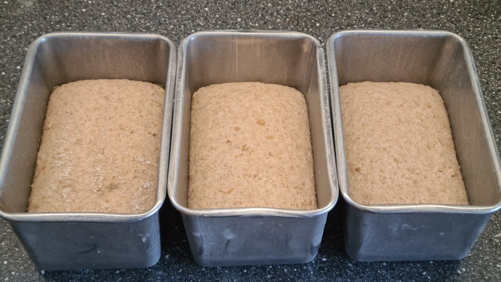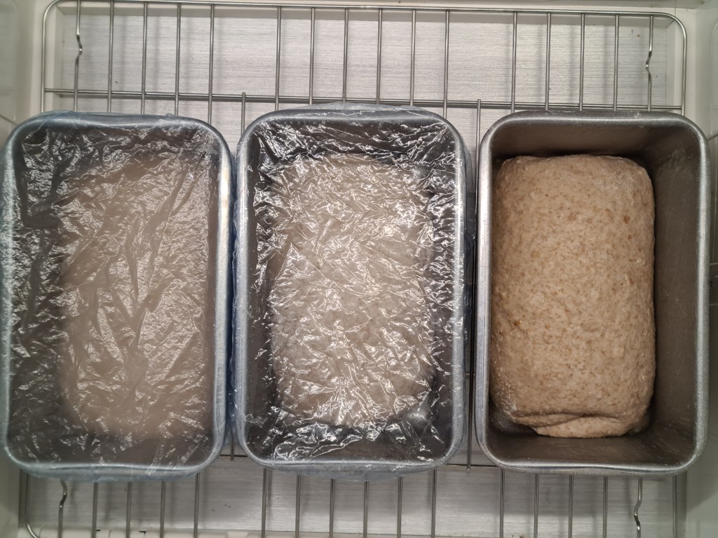 I gave the dough about 30 minutes of rest in the bowl before I shaped my loaves and placed them in their bread pans. I had enough dough for 3 mini pans or 2 20cm (8inch) pans.