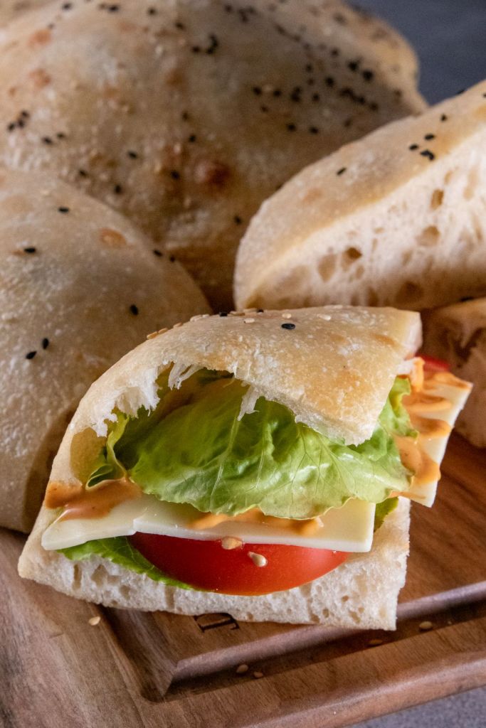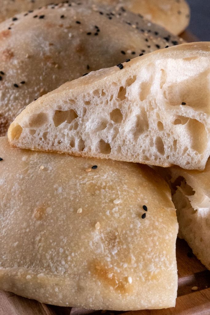 Today’s flatbreads are soft but still sturdy enough to hold stuffings like falafel, grilled cevapcici, meatballs, or piles of veggies together. The taste reminds a bit of pizza crust, comes with a completely different mouthfeel though.