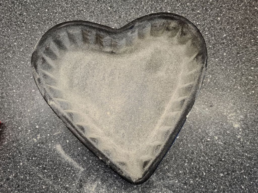 Pre-heat the oven to 150°C / 300F (if you have convection, turn the fan on) and prep your cake mold or baking pan. In my case, I used a generous layer of my pan grease plus a slight dusting of semolina. The semolina can be omitted once the pan has baked some more cakes and is completely back to its old self.