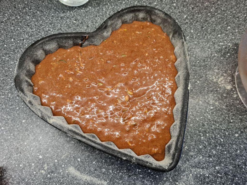 I noticed that I still owe you a cake baked in the iron heart. The first ever chocolate cake I made in it didn’t survive the cooldown as it was cut up and nibbled on before a photo could be taken. I found the recipe for this Einkorn cake with zucchini last weekend, so I thought I’d try that one with some tiny adjustments. You can find the original recipe on the homepage of one the shops where I buy my ancient grains: Urkornpuristen.