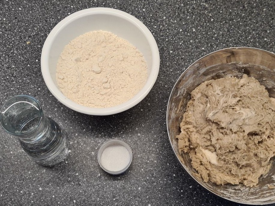 to a mixing bowl and knead it together until you have a smooth dough. You don’t have to pass the windowpane test or anything, just make sure it’s all properly combined and smooth.