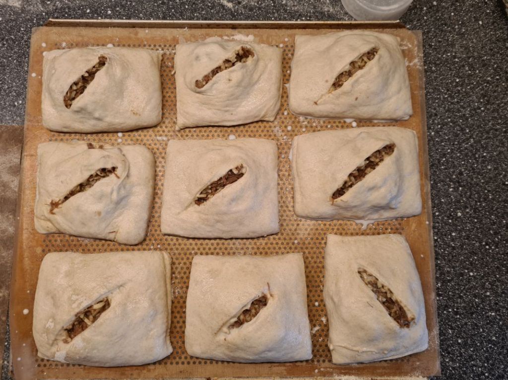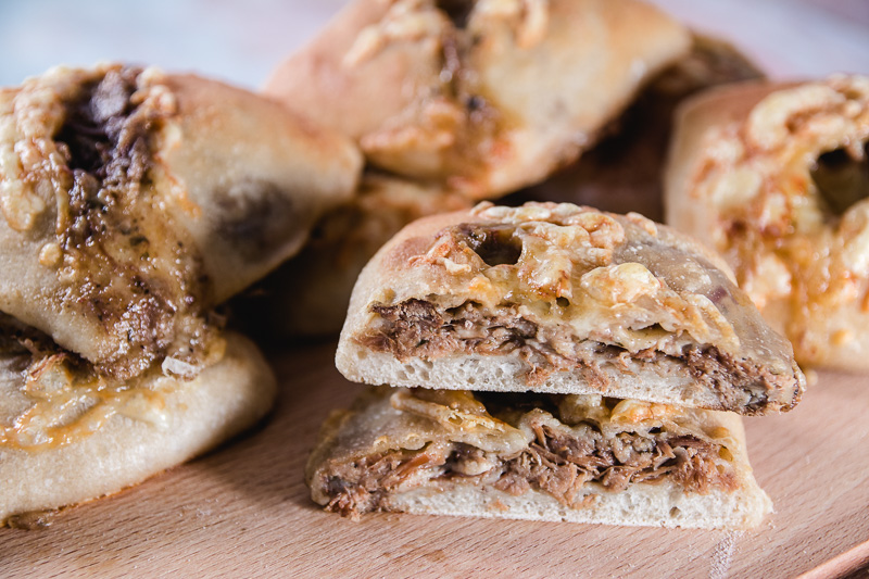 Today’s hand breads are filled with chipotle beef (basically like pulled pork, just beef and with a mexican style flavor profile) and grated cheese.