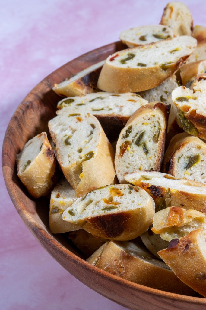 Enjoy your cheddar jalapeno bread alongside a cup of soup, as a base for grilled cheese, or as a sandwich roll or burger bun. It’s also great when you slice it up and offer it as a little side dish to a salad buffet.