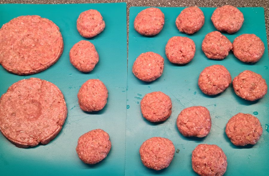 Divide the mass into portions. Size doesn’t really matter. Most butchers sell fist sized ones, walnut sized is great for grazing platters, mine are somewhere in between.