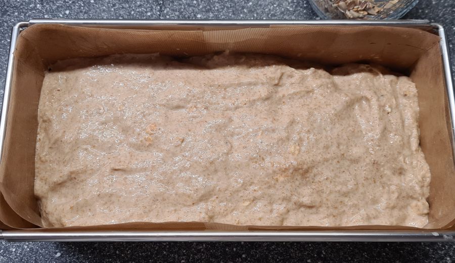 There isn’t much kneading going on this time. Just throw everything together into the bowl and mix until you have a smooth dough. Let it rest for 15-20 minutes so the psyllium husks and all the bran can swell and make the dough less soupy.