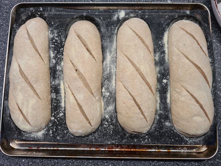Score your hoagies and bake them for about 30 minutes with steam. Turn the temperature down to about 200°C / 390F once they’re in the oven.