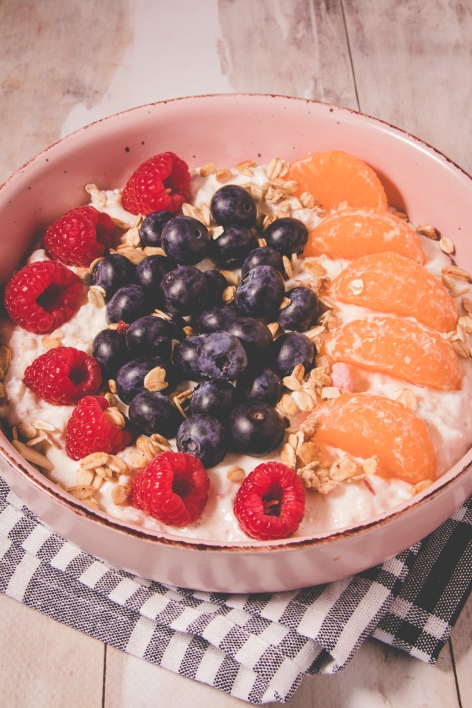 It’s winter, and it should be rye bread season in my kitchen, but apparently my schedule is as messed up as the weather right now. It’s too warm, too wet, too muddy, and my grill is starting to grow moss under its cover. I miss summer. Maybe that’s why I felt the urge for a porridge bowl with fresh fruit.