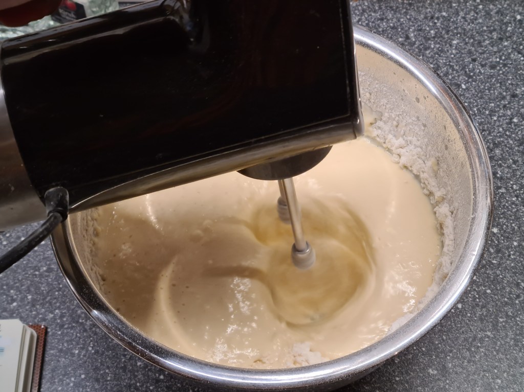 The typical german waffle is as big as a plate and very flat, shaped like a flower that’s made up of 5 hearts. While I do have such an iron, I prefer other shapes. I usually bake big batches and freeze them, so I make waffles in a size that fits my toaster. That way they can go from freezer to coffee snack in 3 1/2 minutes.