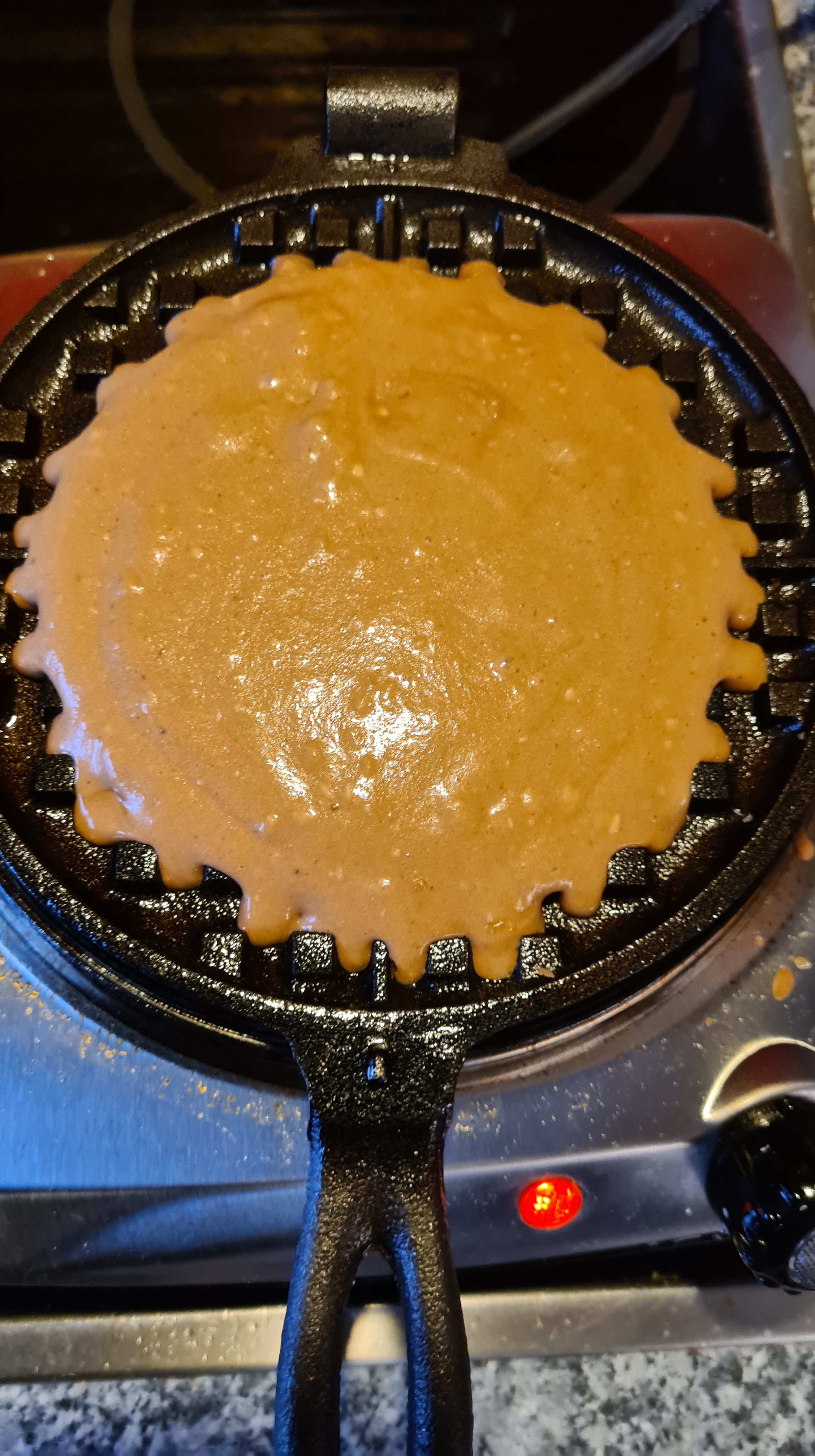 … is a rich one. Don’t attempt to bake a fatfree, low carb protein waffle in cast iron. It’ll stick, it’ll burn, and it’ll make a HUGE mess. Those modern recipes are for modern irons with high tech non-stick coatings.